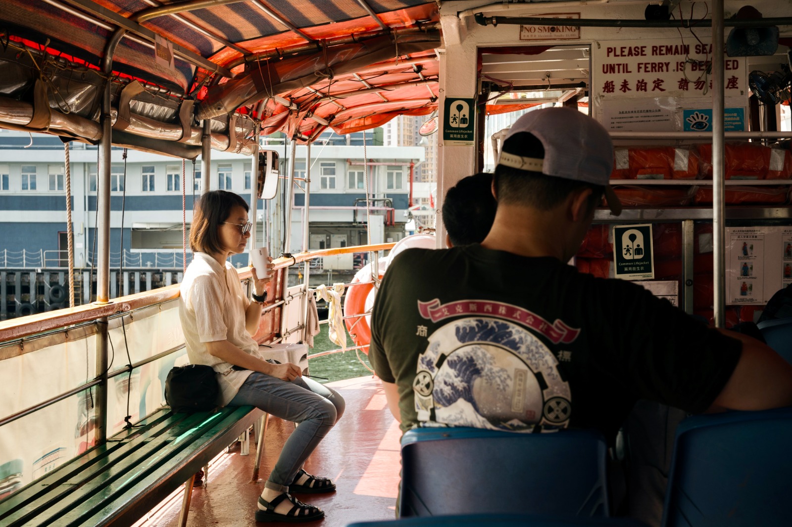 早上9時半從西灣河開出的航線,兩層的渡輪只坐滿約半數的座位,乘客能各自散落坐在自己喜歡的位置上,舒適地閉目養神、玩手機、吃早餐或欣賞沿途景色。居住柴灣的范先生分享,自己每日都會從柴灣坐巴士到西灣河碼頭附近,再轉船往牛頭角上班;即使非上班日子,也會較常用這條路線出入九龍。「自疫情後多了乘搭這條航線,坐船會更舒服,不用在巴士地鐵上跟其他人逼,可以呼吸下新鮮空氣,又有景色可以觀看。每日返工放工坐兩程船,會有一種平時去長洲、離島的感覺。」